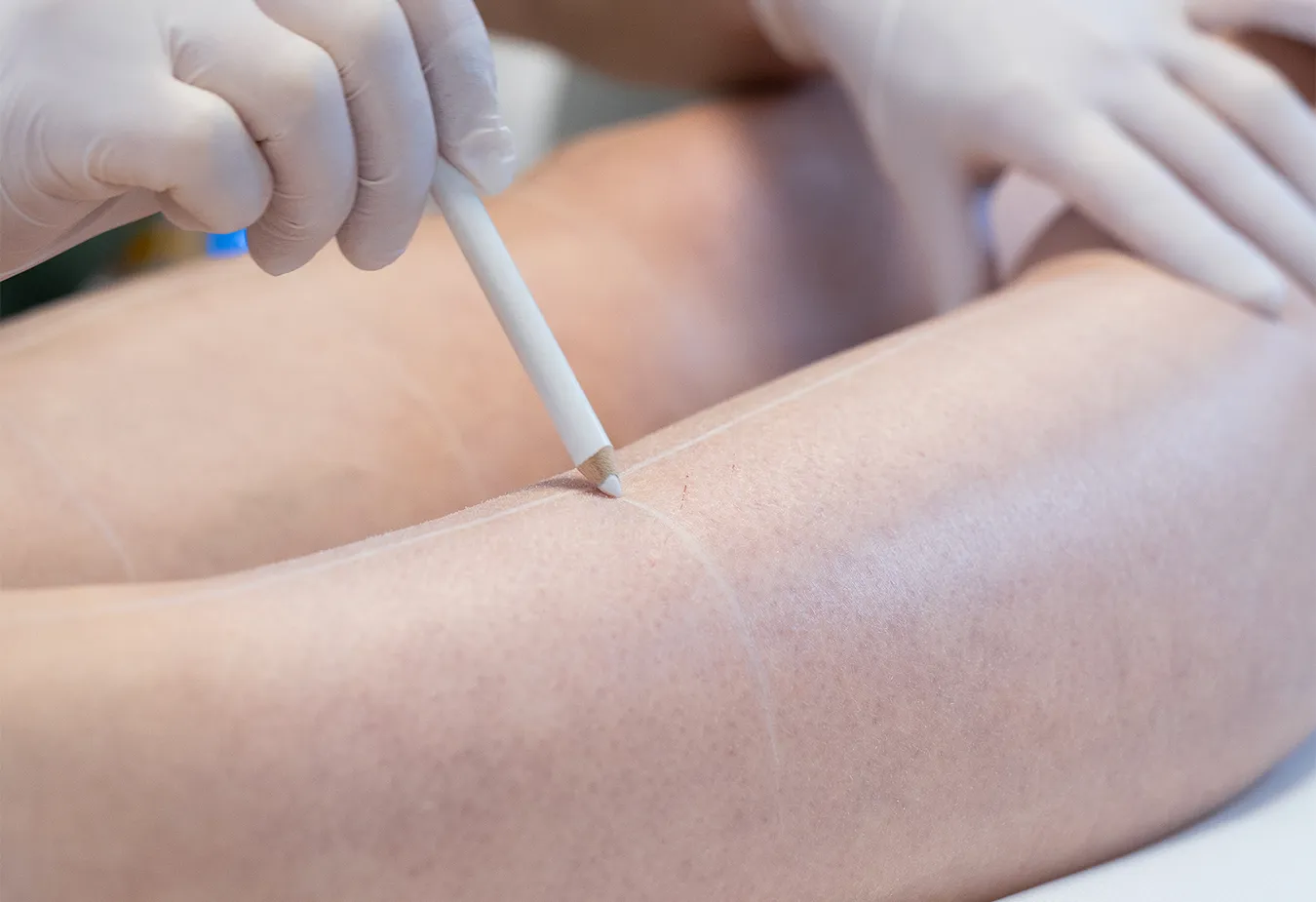 Le jour J, nous délimitons précisément les zones à traiter (quadrillage) et protégeons vos grains de beauté. Votre peau est nettoyée pour optimiser l'action du laser.